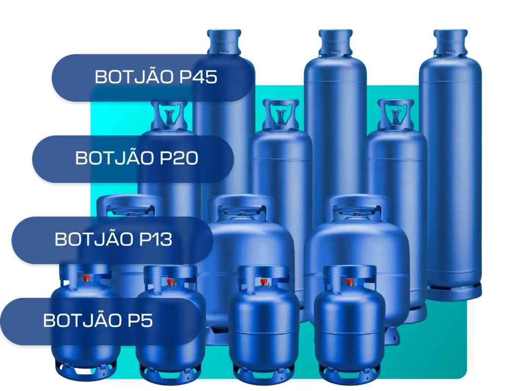 Entregamos P13 (13 kg, uso residencial), P20 (20 kg) e P45 (45 kg, uso comercial e industrial). Todos os produtos são Ultragaz, lacrados e com procedência garantida.